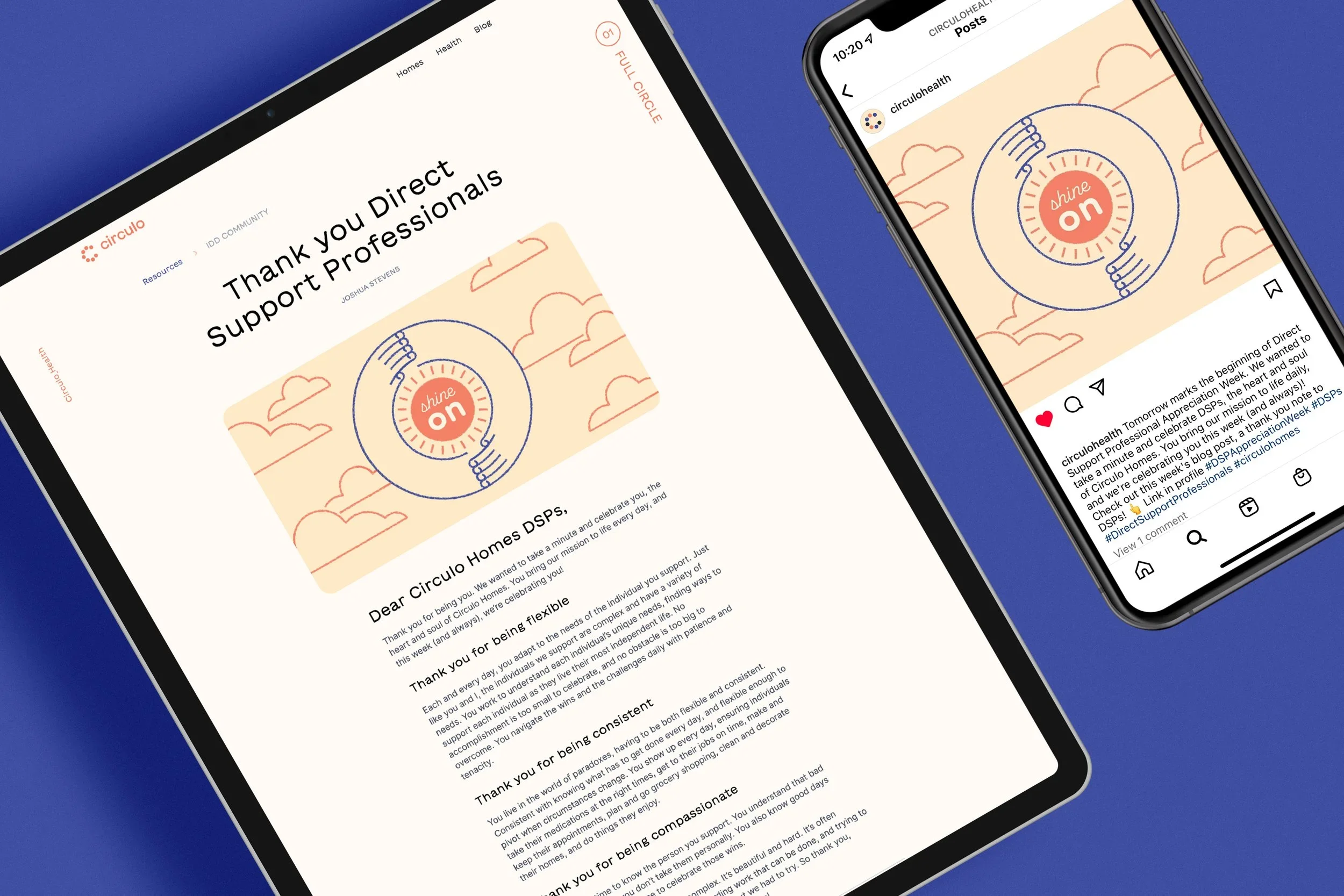 Circulo began a new initiative focusing on providing support for people with Intellectual and Developmental Disabilities. I created visuals to help support the key concepts of the strategy including self-determination, support, and the space to thrive, while centering the people of the I/DD community and the people that work directly with them.